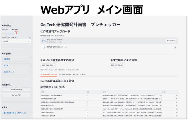 なお、本アプリは 採択可否や内容の正当性を保証するものではなく、申請書類の完成度向上を目的とした支援ツールです。